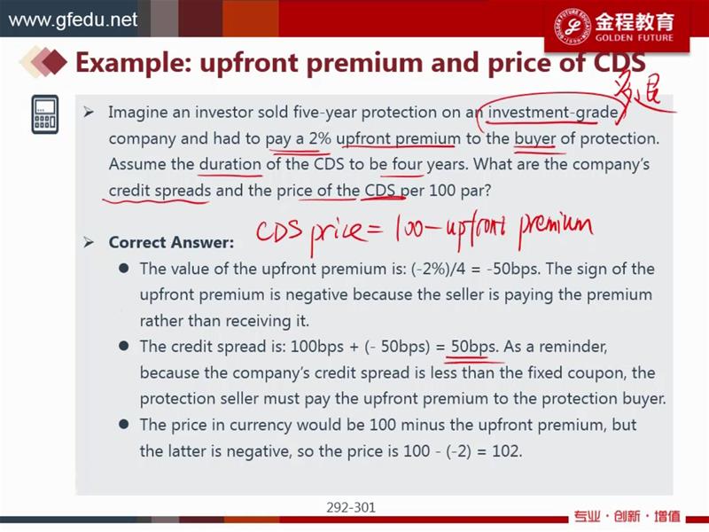 查看试题 已回答CDS price 具体是怎么定义的??希望给出明确答案?? CDS又是衍生品,其VALUATION与PRICE 分别是怎样的?? 本题中,为什么是102??保护100元的本金,投保人要花102块钱买保险,那还不如不买保险呢??