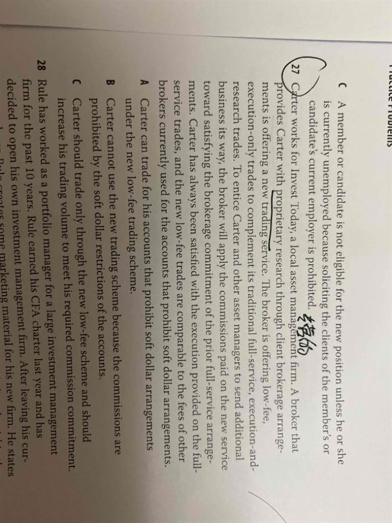 已回答老师你好,30题,所谓的fair dealing,是要给客户公平选择的机会。但是这里面没有提任何能让大客户有公平选择的机会啊。直接就给人家用了更高的交易成本,就算是disclose,也不能排除这种不公平交易。 反正书上讲的几个fair dealing的要点我都没在这道题找到,我认为应该选择C