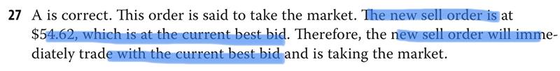 老师您好 这道题说的是new sell limit order,对应的不应该是ask price 吗?只有是buy order对应bid price?为什么课后题答案说的是对应bid price?