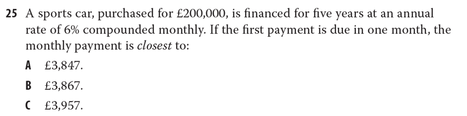 老师这道题,PV=-200000,N=60,Y=0.5%,FV=0,在年金先付的情况下,按计算器得出应该选A,但答案怎么选B呢?