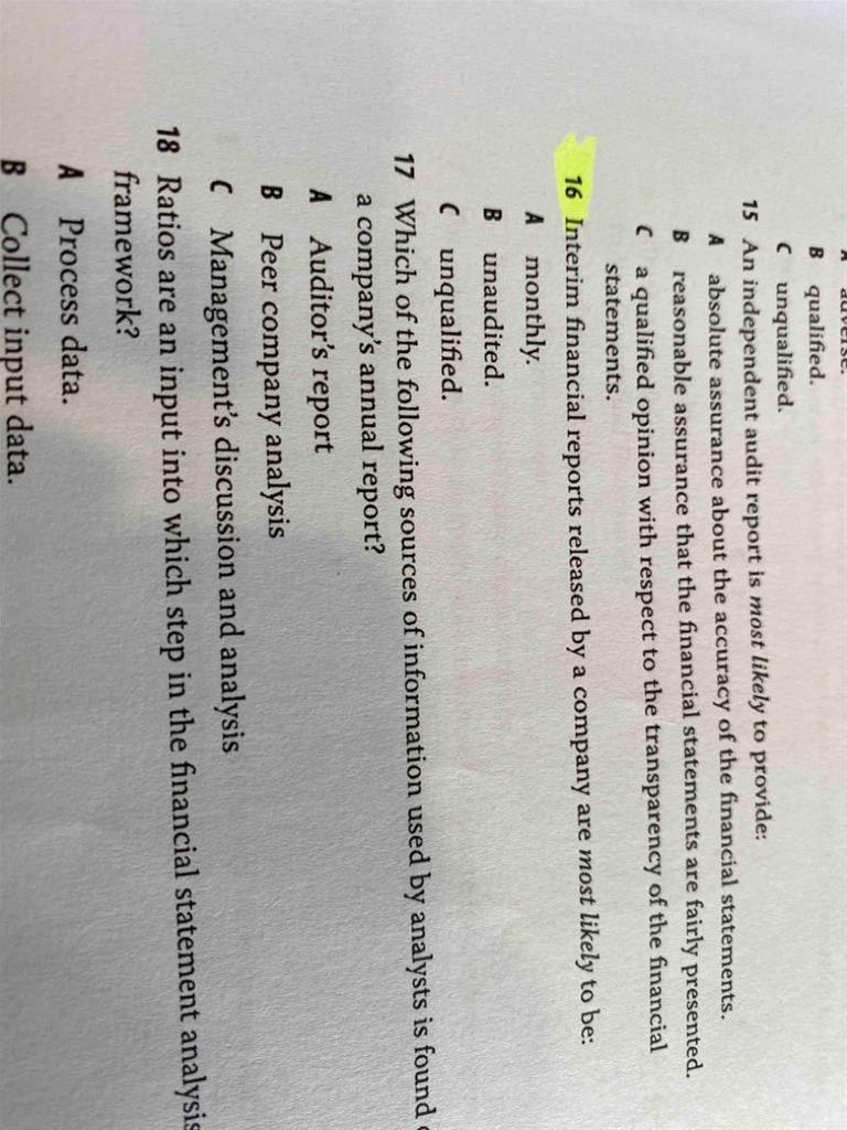 第16题b为什么不对?中期报告不是应该不audit的吗