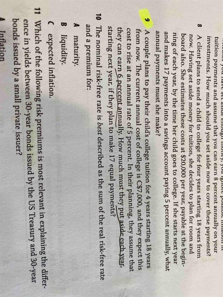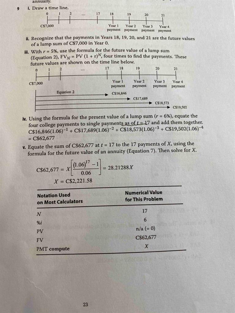 已回答老师您好,德州计算器第三排5个白色按键(TVM五键)中的FV和PV到底代表什么?实例如下: 例如: 有一笔后付年金的r=10%,payment=100,n=3。 那可以算出这笔年金的PV=248.6852,FV=331。 那现在在德州计算器上输入r=10%,FV=331,PV=-248.6852,n=3, 为什么算出来pmt=0? 在r,n不变的情况下,只有令『PV=-248.6852,FV=0』,或者令『PV=0,FV=-331』,才能算出pmt=100? TVM那一排五个键里面的FV和PV到底代表年金的现值和终值,还是分别代表T0和Tterminal时刻的除了payment以外的现金流?感觉这里输入的FV,PV的值就是上面年金算出的FV和PV,但他俩其中一个输入了上面算出的值,另一个就要输入0,不然算不出正确的pmt。现在FV和PV两个键输入和输出的数值分别代表什么,完全逻辑混乱了。