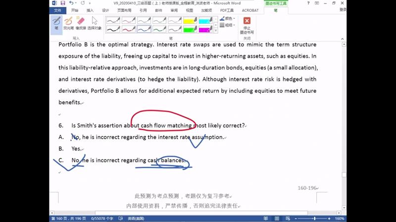 老师,我觉得固收案例7问题6的选项A,cash flow matching 并没有利率假设,课上还对比过cash flow matching和免疫策略。原文中一个保守的利率假设,从何而来呢?指的是什么?