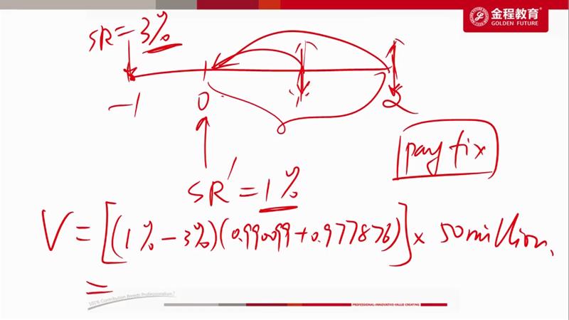 老师好,请问下,求价值PV收-pV支,应该算出来浮动的PV-PV支固定的,思路应该是这样的,这个答案的思路是进入这个swap和不进去这个swap,带来的亏损,计算价值有两种思路??这个新思路不是很理解。