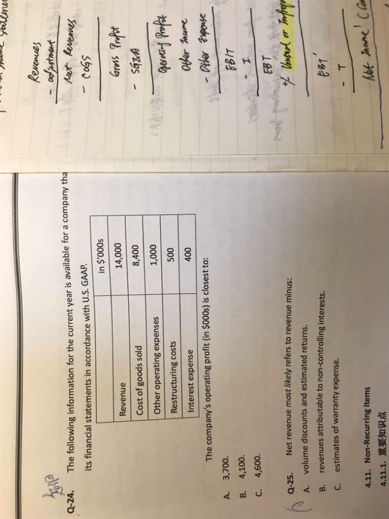 老师 请问求operating profit 根据我右边写的公式 难道不是减完SG&A就得出吗? restructuring cost难道不是unusual item吗?