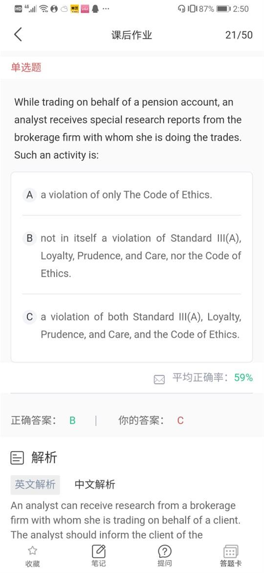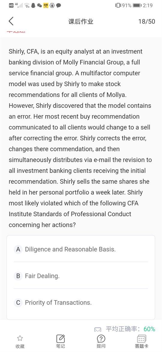 已回答请问在这道题目里面,shiry是在investing bank division工作,然后在她发现模型错误更正了之后,给所以incesting bank 的客户发了邮件,为什么说违反了fair dealing 呢? 从哪里看出来她还有别的客户呢?谢谢