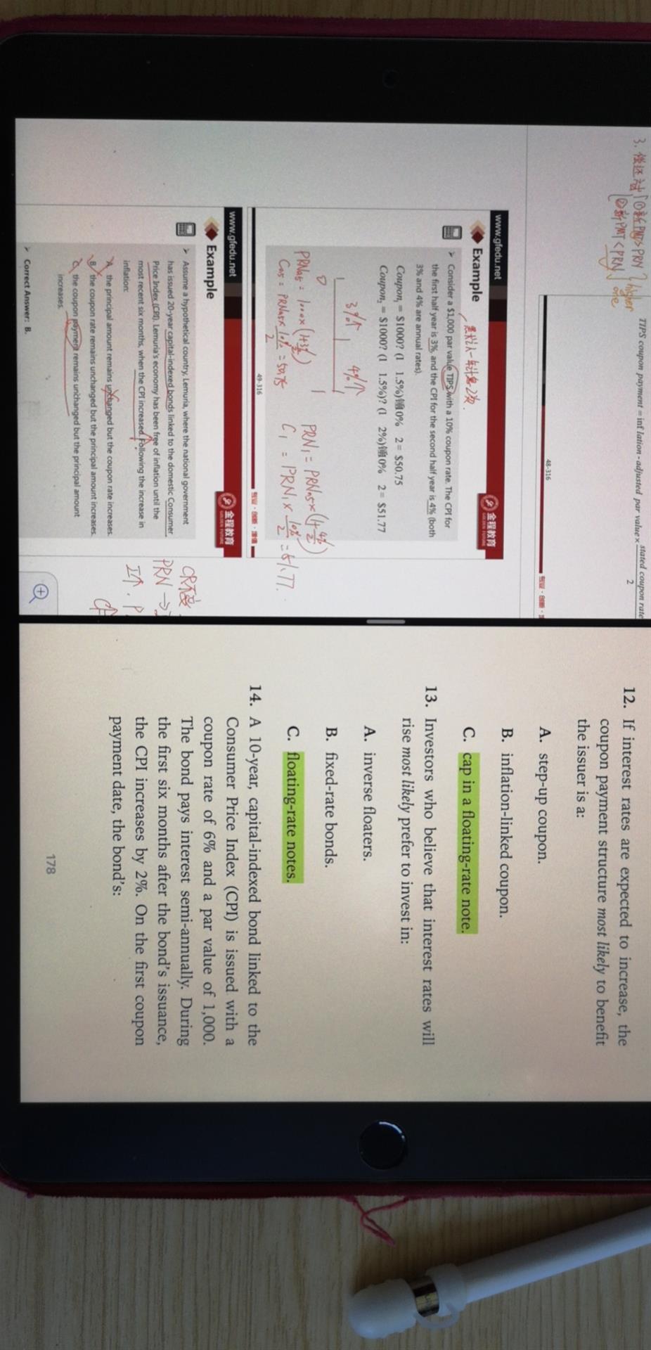 关于capital-index bond的计算问题,讲义p48页上对于CPI的处理方式(除以2),和原版书p178的第14题的处理方式不一样(没有除以2),两个都说是半年的CPI, 请问是讲义有问题,还是我理解错了呢。