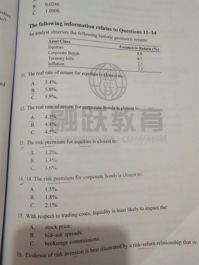 CFA问答包含CFA在线课程、CFA通关课程、CFA试题等所有CFA相关问题,每个问题老师均会在24小时内给出答疑回复哦!