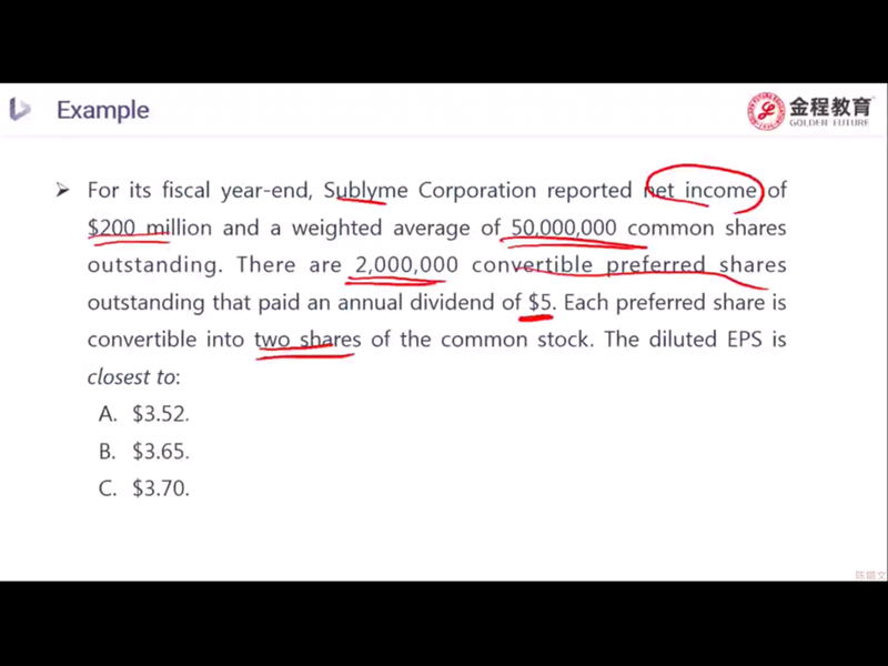 老师,这道题算BEPS的时候分子也要减可转化优先股的股利吗?(也就是说beps的公式中分子的div preferred也包含可转化的吗)