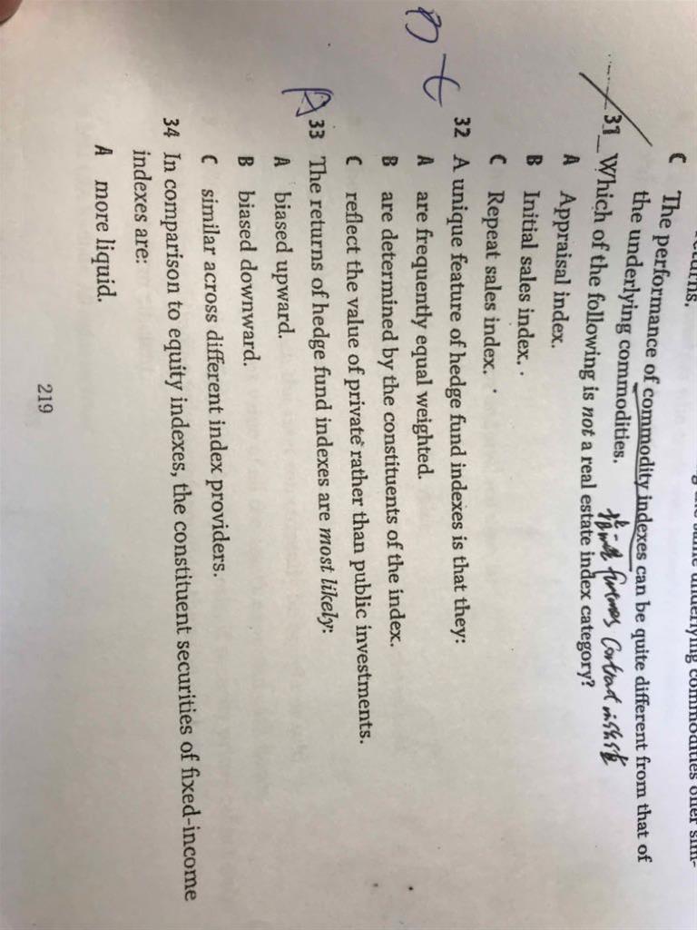 老师请问 31题,不清楚房地产指数 视频好像未提及 32题对冲基金指数也没提及 34题 A可以理解为债券指数的turnover 更大 所以A正确吗?