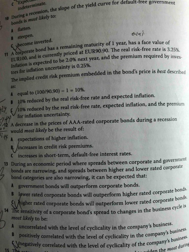 第13题按题目的意思应该是在经济好的时候,现在spreads在变小。高利率债券的收益不是应该更好吗?它的rates不是指票面利率吧?