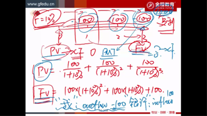 这里终值还有一种算法,n=4 i/y=10 pv=0 pmt=-100然后算出的Fv-100和用计算器先付年金算出来的结果是一样的,这样对么?