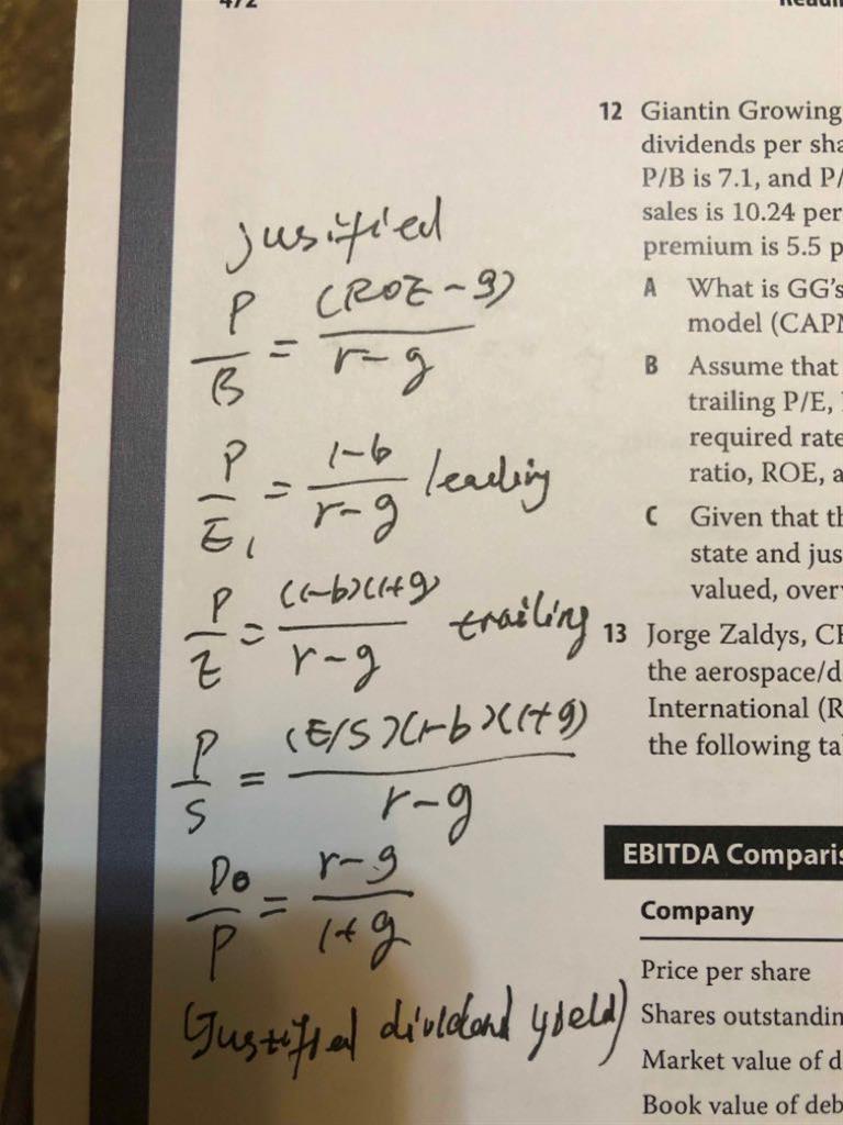Justified multiples, 其中P/B是怎么推导得来的呢?