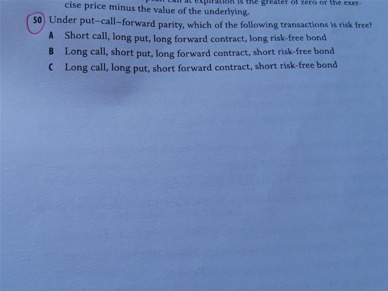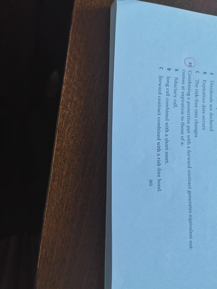 第45题,fiduciary call等于protective put这个put call parity的公式我理解,如果protective put +forward contract是什么意思?