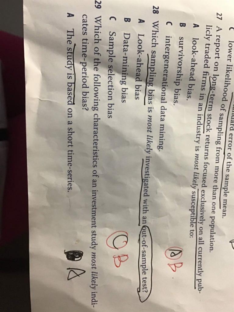 查看试题 已回答老师你好,reading 36, 第二题,我在讲义上找到operational due dilligence分成 firm, suitability of investment tool 和 evaluation of invetsment terms. 所以我选择了A。 在manager 的定性评估里面提到了四点,包括investment philosophy , investment personnel,investment decision making process和operational due dilligence。 答案选择C,答案的来源是哪里呢? 我总要在原版书上找到相应的出处啊。 他题目中问的是investment due delligence,但原版书上没有invest due dilligence这个名字啊,只有operational due dilligence。