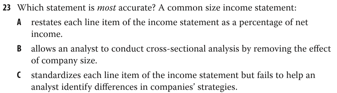 这道题中的common size income statement 是什么意思?讲义中没有,答案是哪个?为什么?