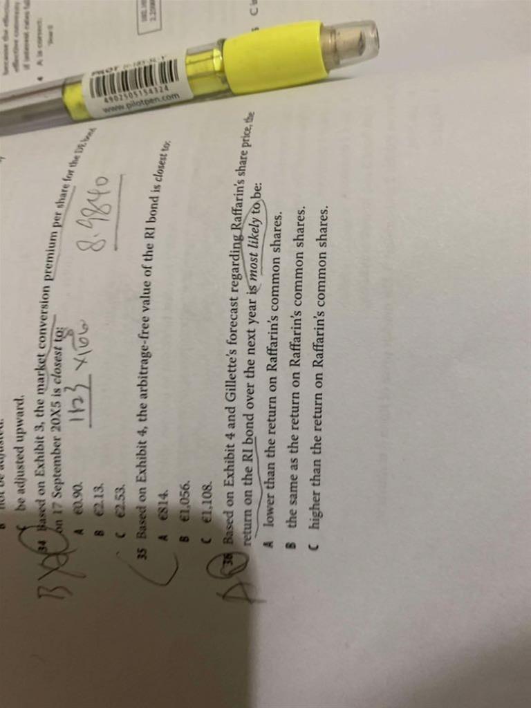 这change of control conversion price 和 initial conversion price 区别是什么 怎么样 怎么选? 34题计算market conversion premium(已经发过股利)的话要怎么选的呢?