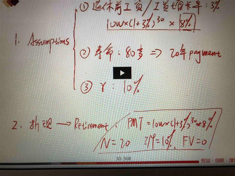 老师,这是关于DB plan老师在课上举的例子,有两个地方不太明白:1,为什么是乘以8%,而不是1%?2,前后两次折现的折现率既然是一样的,可不可以一次性折现到当前时间呢,比如直接N=50?谢谢!