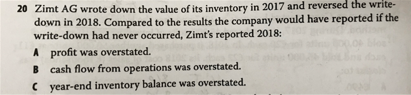 这道题意思是2017年计提存货减值了,那2018cogs应该是下降 profit上升?为何答案还会选择高估了利润?