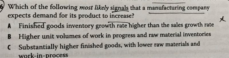 请问这道题C选项如何理解?题目问的应该是产品的未来需求增长,那么信号可以是更低的原材料(采购量大 导致原材料成本降低)