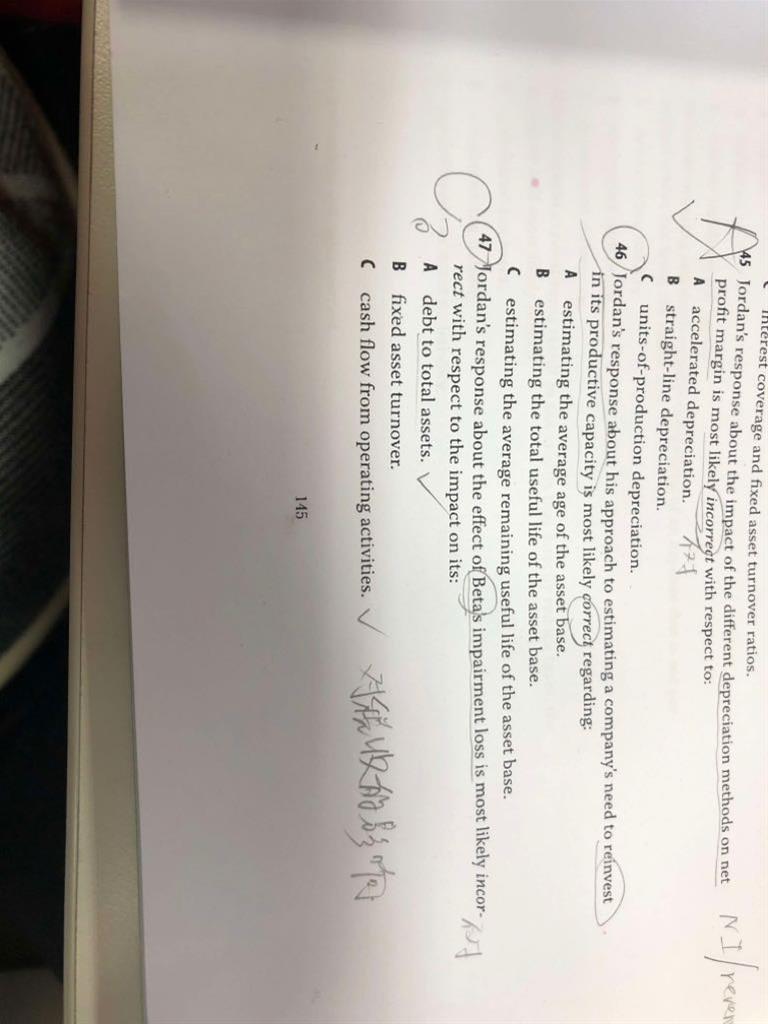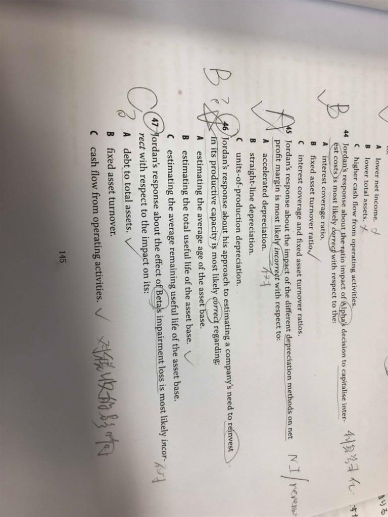 第47题 资产减值减少睡前利润 减少所得税。所以减少了经营活动现金流的流出没有问题啊。我认为lower it’s cash flow from operating activity 是对的