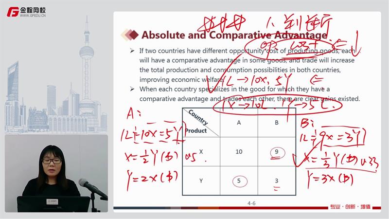 这道题老师把A国家和B国家生产X的机会成本直接说成0.5$和0.33$不对吧?这两个数字只是对应各自国家生产X的机会成本啊!不是同一个国家,怎么能直接比较呢?