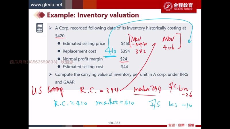 老师,蓝色笔写的,RC大于NRV时,MARKET不应该等于NRV吗?是不是讲错了?
