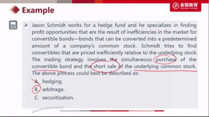 老师 不太明白这几个之间的关系 hedge fund交易策略里面记得也有一条说利用不同市场之间价格的高低来做套利 那我理解hedge fund不仅仅是利用衍生品对冲风险,也包括了套利,即选项A是包括了选项B的