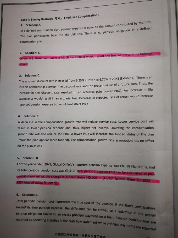 第四个case第2题,为什么选C?题目解释是两种准则都是要Report funded status;老师的讲解只是说fair value- pbo...