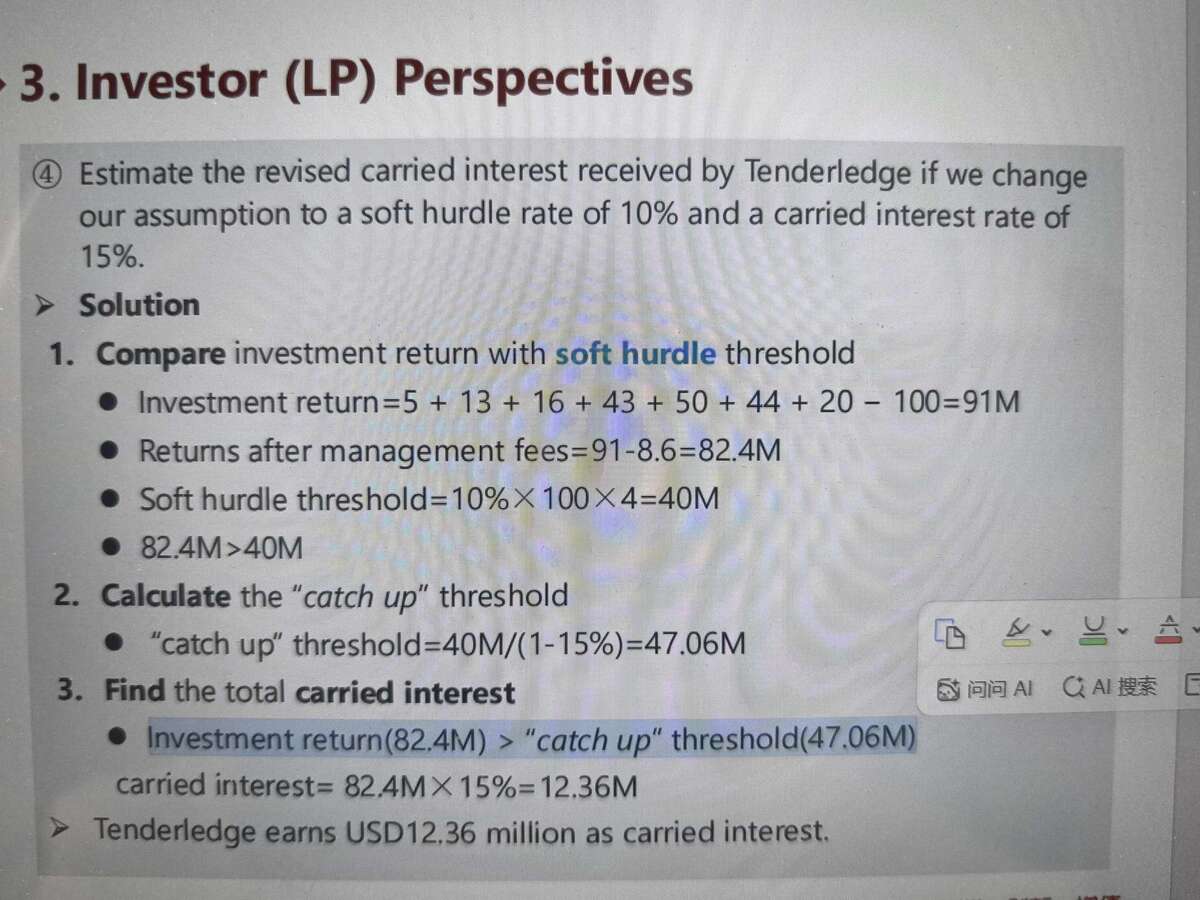 老师这个里面我画阴影部分,如果计算出来,investment return 小于 catch up threshold 该怎么办呢?