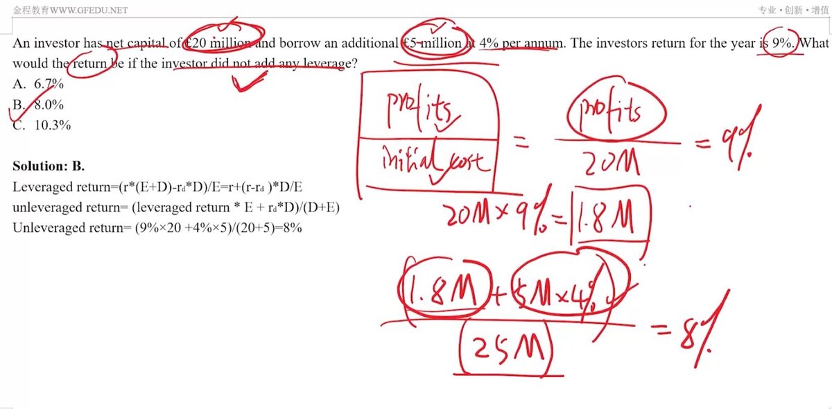 老师,这题目问的是没有杠杆的收益率,为啥要加借款的收益和借款的成本进行计算?
