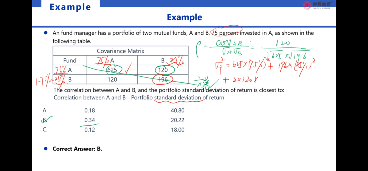 这里公示为啥是2×120(A和B的协方差)×权重,而不是2×A的方差×B的方差×权重?