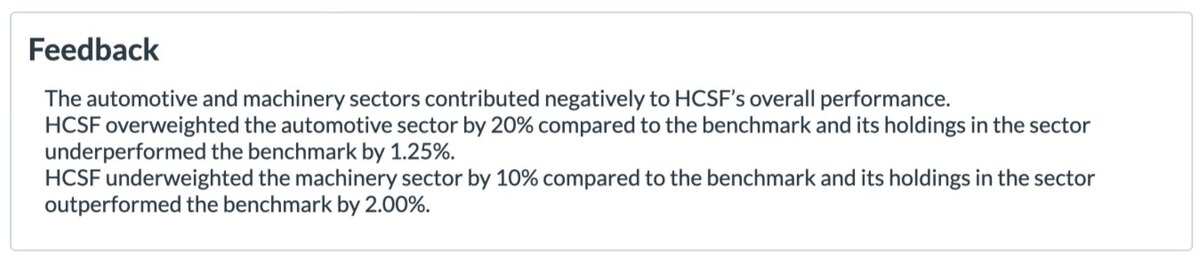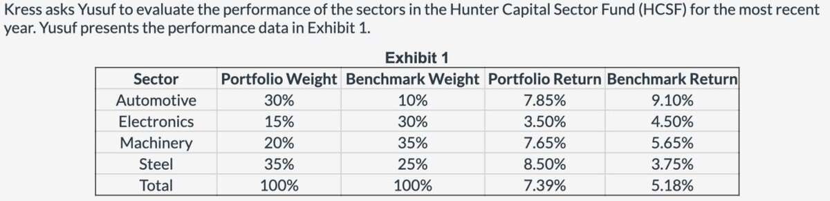 Q6的解答已了解,按照BF model计算A即可找到正贡献的。我的问题是:课后题中有一个写作题,如图1所示,这个让找负贡献,但是图2协会答案给的是用portfolio retun与benchmark return作比较找到负贡献的。这两个题都是找贡献,协会那个题的解答思路为什么和我们本选择题的思路不一样?区别以及判断的依据是什么,谢谢。