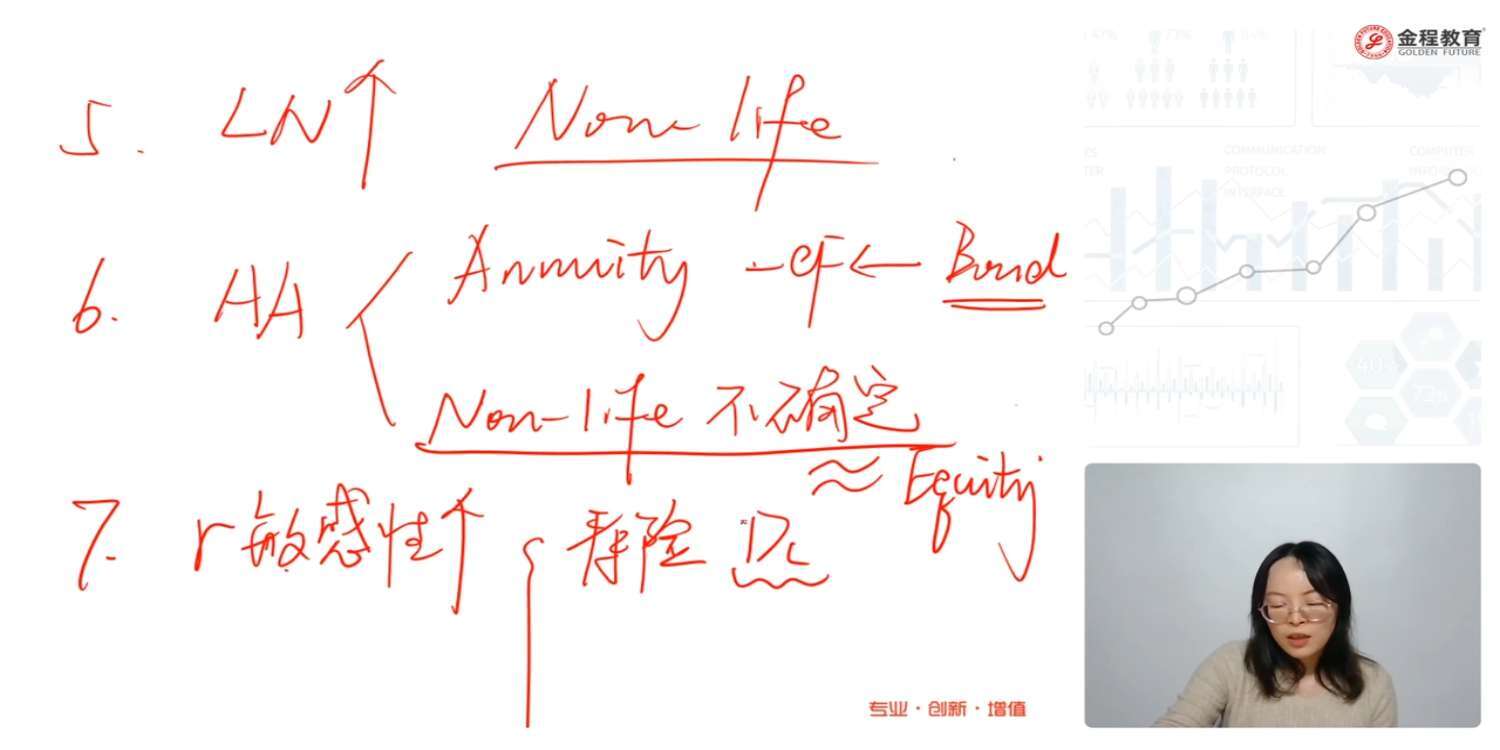 这个在AA问题配置中有同学也回答了疑问,你们的助教是这么回答的:你好,life insurance的投资期限更长,所以站在fund整体的角度,风险承受能力更强。而P&C的投资期限较短,可能会比较容易的发生赔付,所以fund整体的流动性需求较高。 既然寿险时间长风险承受力高就应该配股票,PC投资期限短就应该配债券
