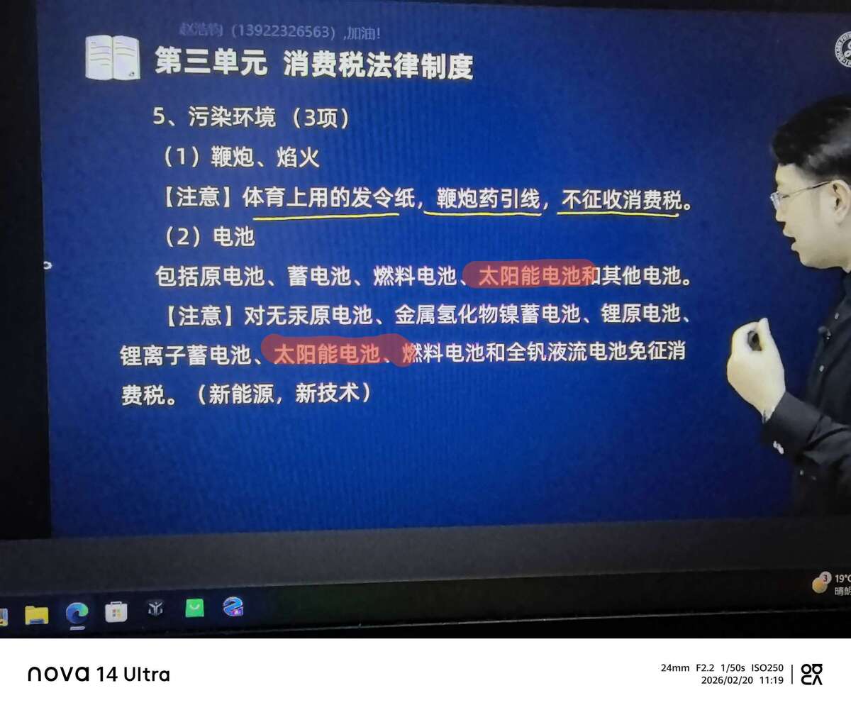 消费税征收范围里面的电池这个税目,太阳能电池在这里怎么写了两个,太阳能电池属不属于征收范围啊