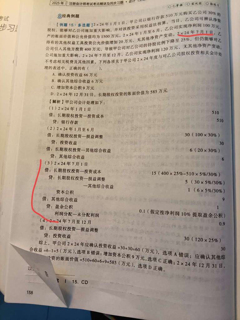 - D选项调整长投我理解 那里调整所有者权益了呢