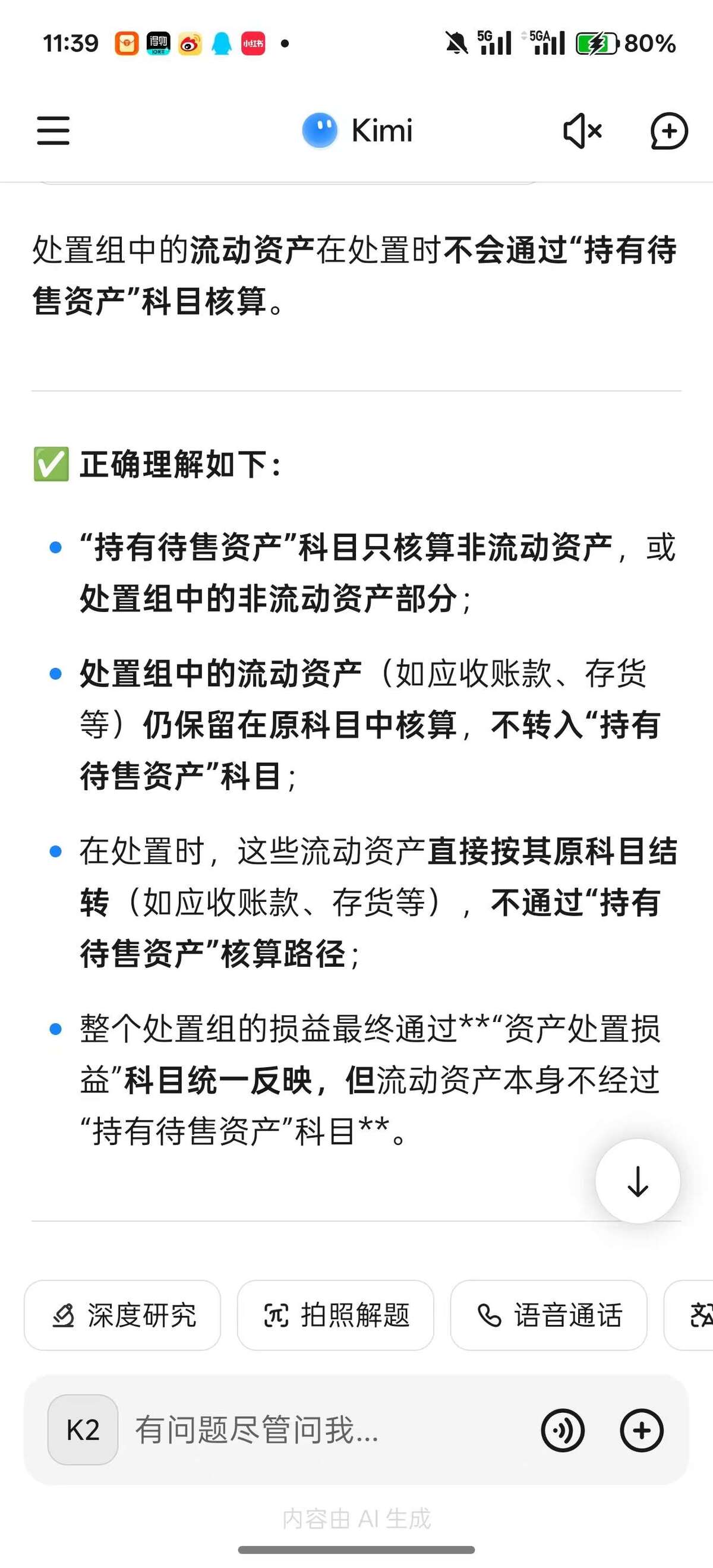 图一中红笔画的这句话意思不就是处置组的流动资产不通过持有待售资产科目核算吗。那这道例题,为什么这个门店出售的时候,这些流动资产也划入持有待售资产科目核算呢。我觉得就和规定不符了,所以我也去查了一下,回答也是流动资产不应归入持有待售资产科目啊。