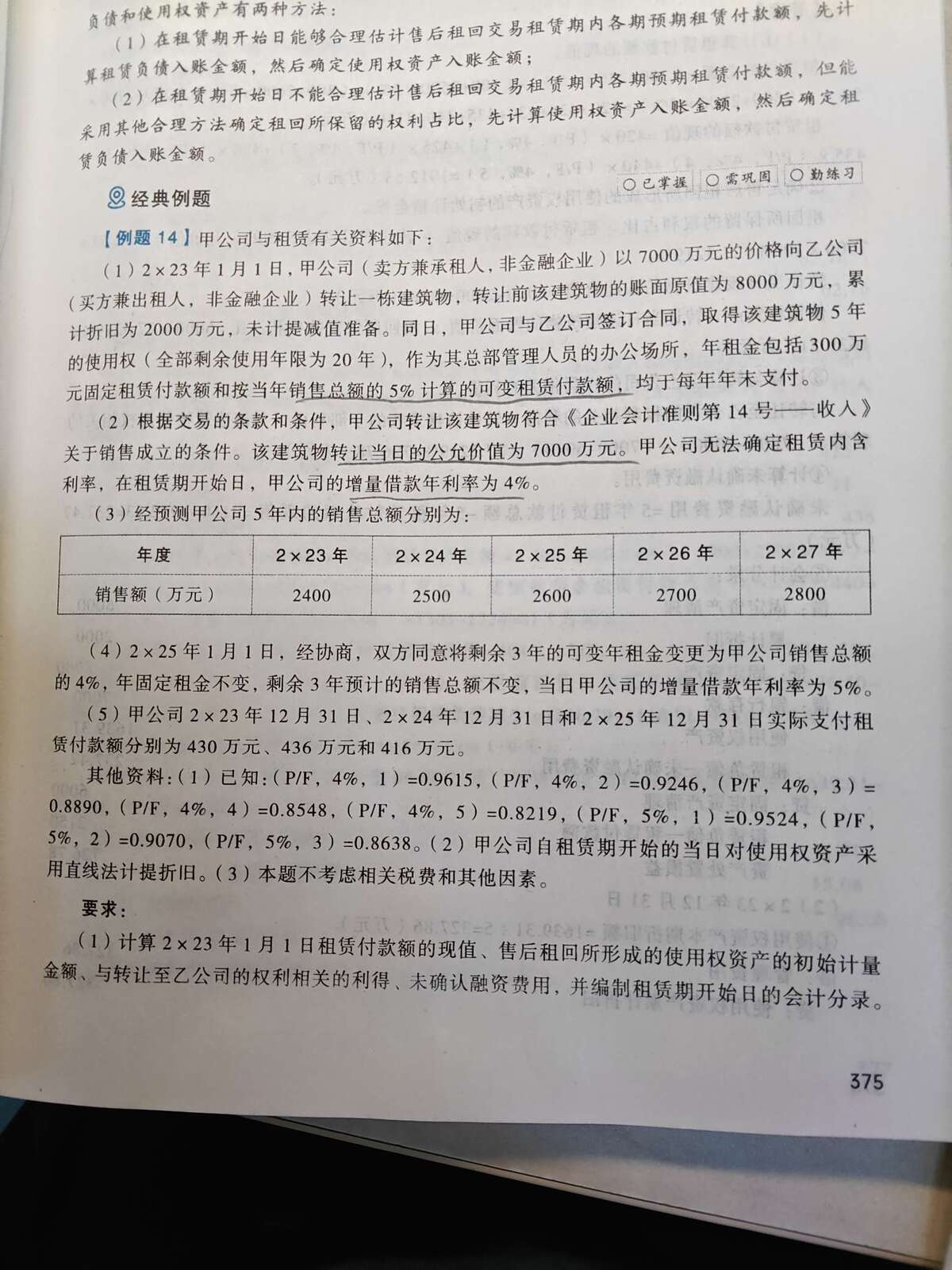 这是东奥的融资售后租赁指导例题,是不是有问题,不是说计入租赁负债的只有和指数相关的部分吗,但是这道题把根据销售额比例的付款额也计入租赁负债了。