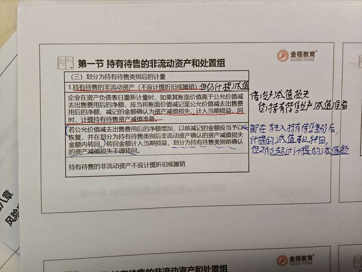 但是这道题目,这些流动资产的减值是转为持有待售之前就计提的减值啊。我们讲义说,划分为持有待售之后的减值是可以转回的,但是划分为持有待售之前的减值损失还是不能转回啊。那这还是要在当日就把以前计提的流动资产减值转入持有待售资产减值科目吗。