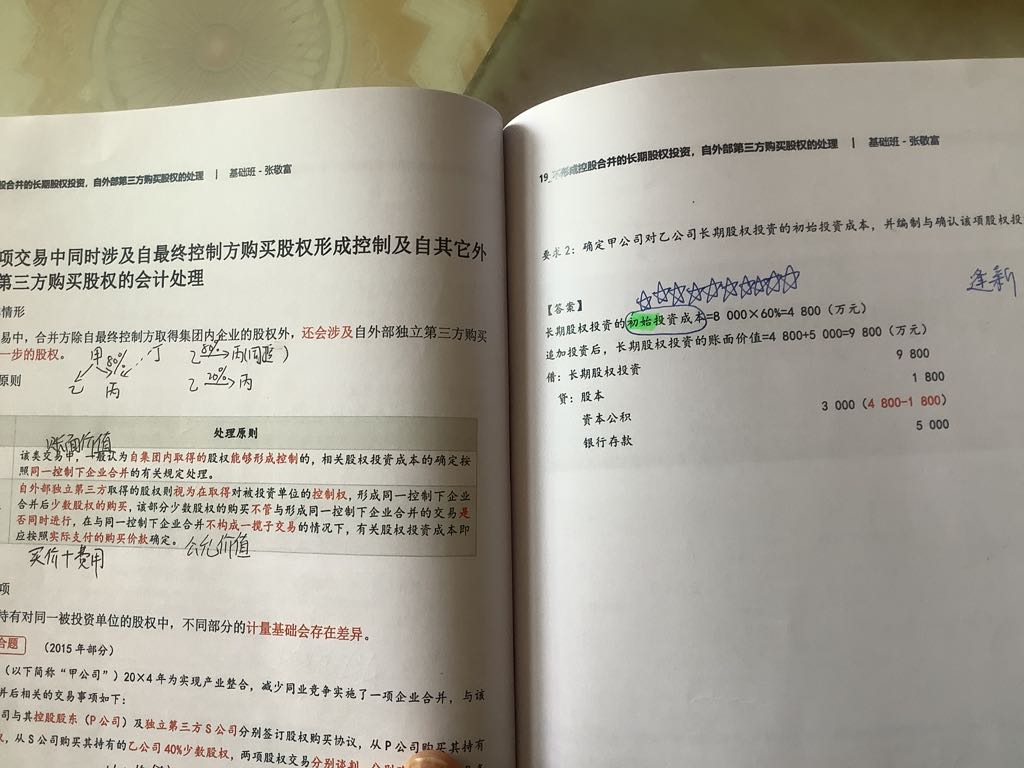 同学,你好,你拍照讲义跟这道题是一致的,长投初始投资成本包括两部分:从最终控制方获取的,按同一控制原则确定;从外部独立第三方获取的,按实际支付的购买价款确定