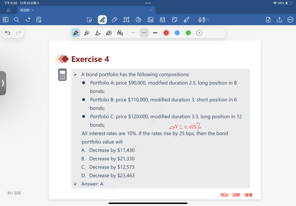 老师,B哪里看出是bullet portfolio? Bullet不是说现金流集中在中期到期吗? 从哪个数据可以判断