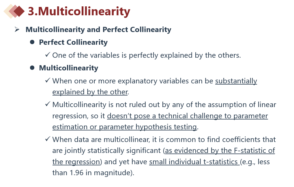 老师,这里只是讲了什么叫perfect collinearity和multicollinearity,并没有说明什么是imperfect multicollinearity啊? 然后A选项在这里是怎么理解呢?
