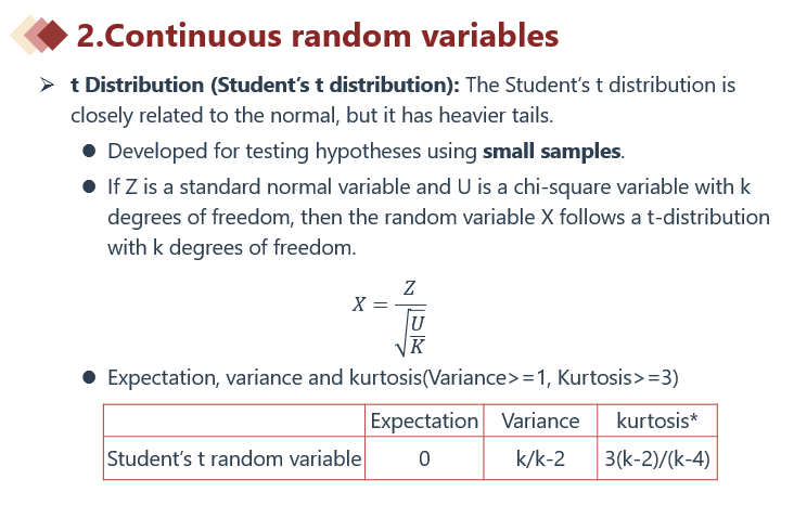 老师,student t分布与normal distribution和Chi- square的关系在讲义里哪里? 所以它是等于Normal distribution / Chi-square开根吗