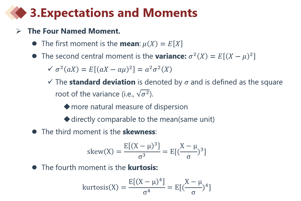 同学你好。1. 可通过按发生概率对变量的取值取加权平均得到:90*40%+100*50%+110*10%=97。2. 有的,见基础课课件第29页。