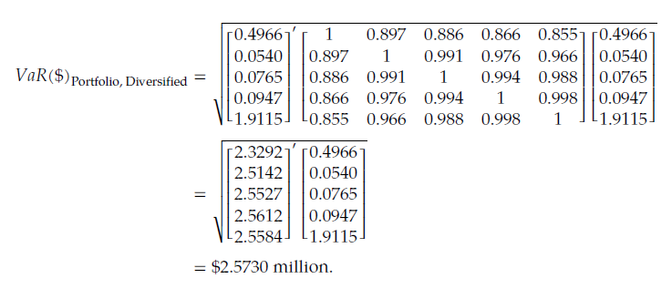同学你好。在计算组合的VaR时,delta-normal法确实会用到方差协方差矩阵,然后基于矩阵的运算求解VaR,这也是参数法的典型特征。一级的话这个当做结论记住即可,二级才会更多涉及到组合层面VaR的计算。下面我放了个例子,这个例子是五个零息债券的组合,第一张图中第二列是每个零息债券的价值,第三列是基于课上的公式算出来的每个零息债券的dollar VaR;第二张图是不同期限零息债券的相关性矩阵(也就是协方差矩阵的“标准化”版本);第三张图是组合层面VaR的计算。一级考试的话你能知道单个债券的VaR怎么算就足够了。
