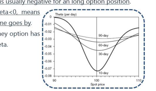 同学你好,用theta的解释如下图。但是这个题,我个人觉得不用theta解释也行,比较容易理解。在金融市场与产品中,期权的总价值等于时间价值+内在价值。当期权在ATM时,期权的时间价值是最大的。