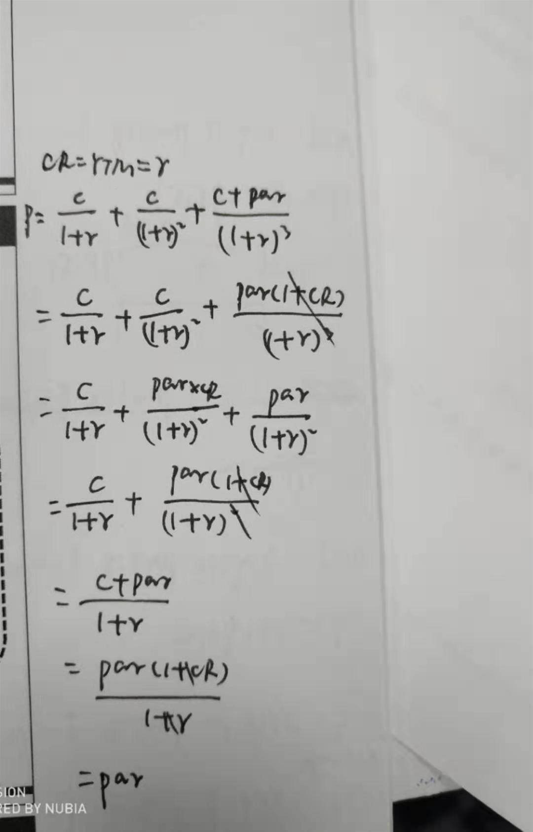 同理,如果分子上的CR(coupon rate)小于分母上的折现率, 那个这个式子算出来会变小,p就会小于par