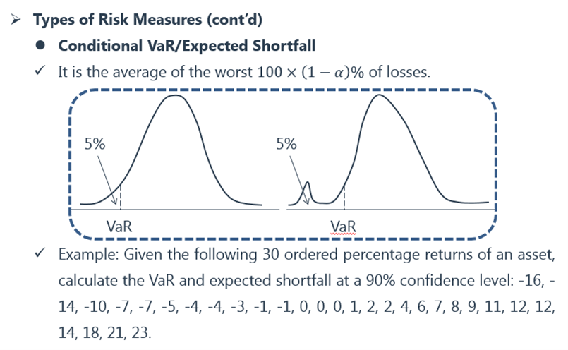 同学你好,conditional VaR等同于Expected shortfall 。