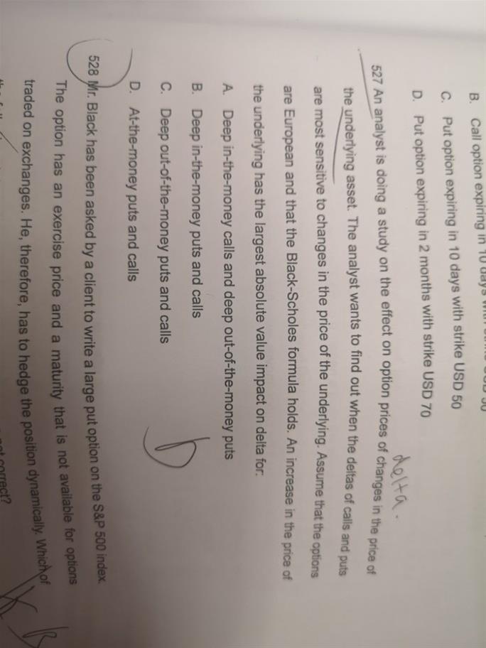 一位分析师正在研究标的资产价格变动对期权价格的影响。找出标的资产价格上涨对delta的绝对价值影响最大。是对delta的影响,其实考虑的就是gamma。Gamma表示标的资产价格的变化,对于delta变化的影响。因此应该选择gamma比较大的时候。
