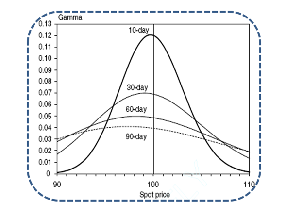 通过gamma的性质,可以应该是D。也就是当期权在ATM时,gamma最大。